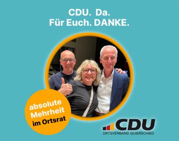 Die CDU Quierschied und Ortsvorsteher Stefan Ziegler möchten allen Wählern herzlich für ihre Unterstützung bei den Kommunalwahlen danken. Mit 5 Sitzen im (...)